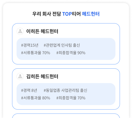 수많은 헤드헌터들중에 자신의 능력에 확신이 있고 검증된 사람들이 모여있습니다.